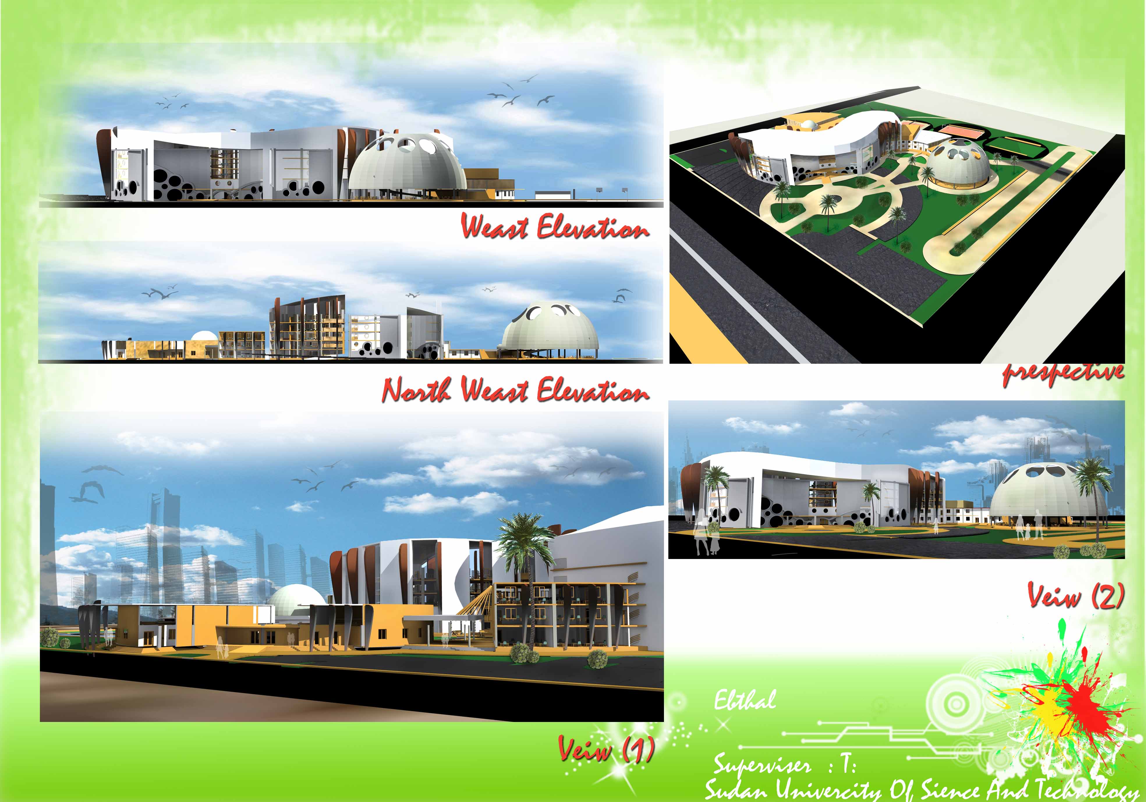 Abstract: | المشروع عبارة عن مركز تنمية مواهب الاطفال وهو مشروع تعليمي ثقافي ترفيهي رياضي ، يخدم الفئة العمرية 5-15 سنة . يهدف المركز الى تنمية وتطوير تنمية ومواهب الاطفال في المجالات المختلفة ، غرس القيم الفاضلة والعادات السلوكية الحميدة في نفوس الاطفال . يتكون المشروع من اربع كتل : الكتلة رئيسية وتشمل الفراغات التعليمية والادارية والفراغات الفنية وفراغات المهارات اليدوية اما الكتل الاخرى فتشمل كتلة الصالة والمسرح والكتلة الخدمية والكتلة الترفيهية والرياضية بالاضافة للملاعب الخارجية . يتألف البحث من خمسة ابواب يشتمل الباب الاول على تعريف المشروع والاهداف واسباب إختيار المشروع .والباب الثاني يحتوي على معلومات عن مواهب الاطفال وكيفية تنميتها بالاضافة للنمازج المشابهة ... والباب الثالث عبارة عن مكونات المشروع وتحليلها ..وموقع العام ودرسته ..والباب الرابع تناول الفلسفة التصميمية وتطويرها ...اما الباب الخامس يحتوي على الحلول التقنية المستخدمة للمشروع . واخيرا قائمة المراجع والمصادر . |