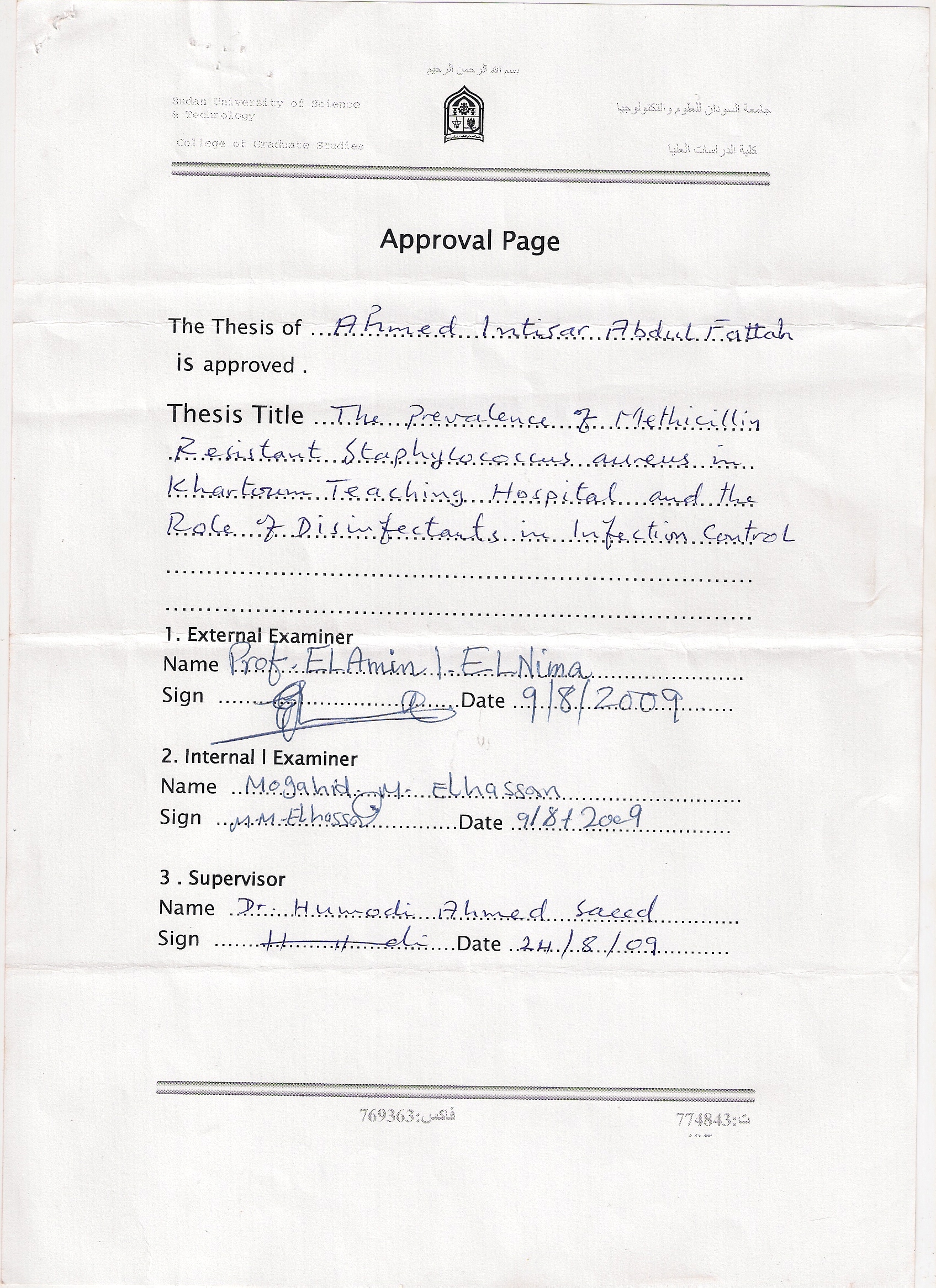 Supervisor,- Humodi A. Saeed