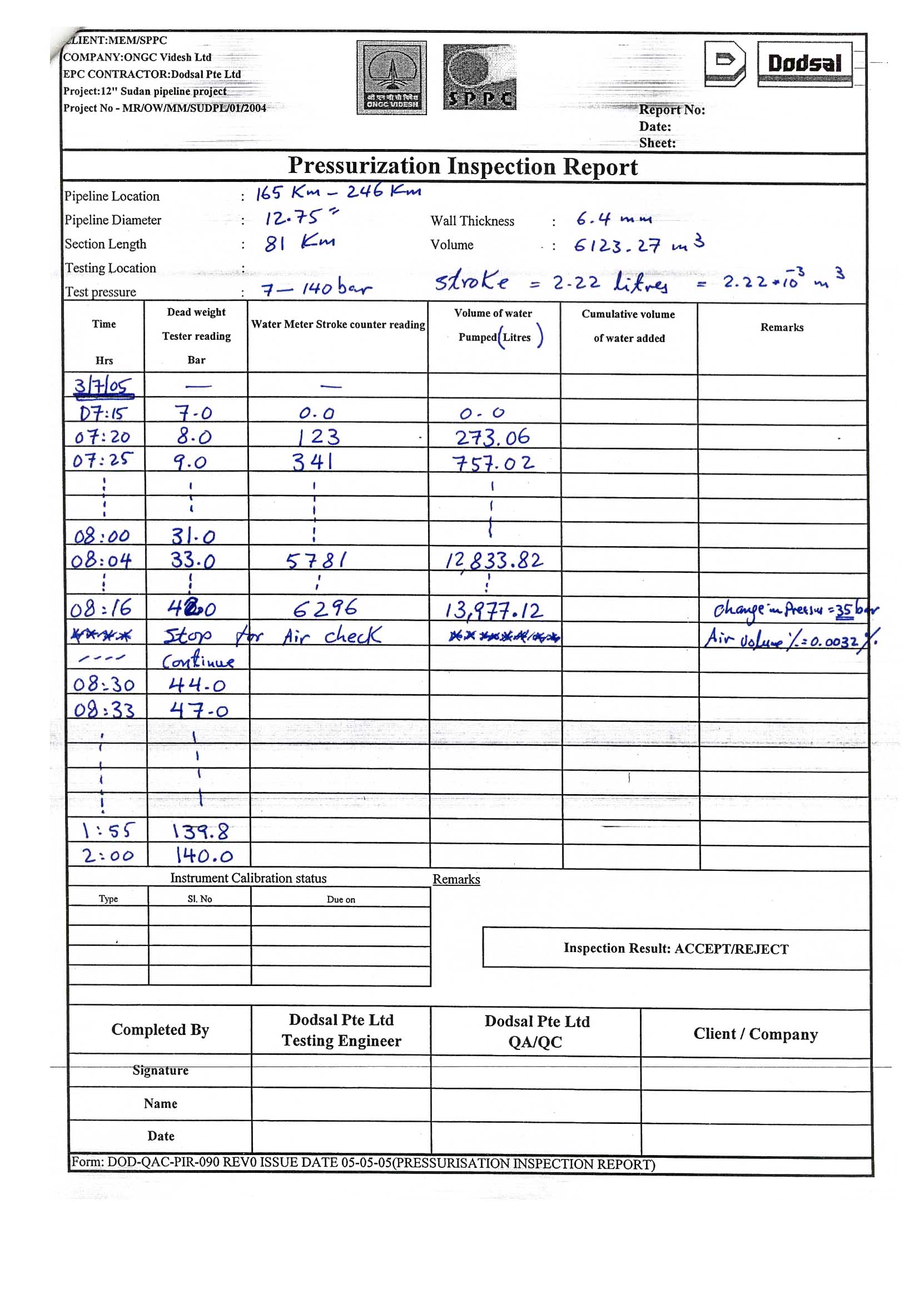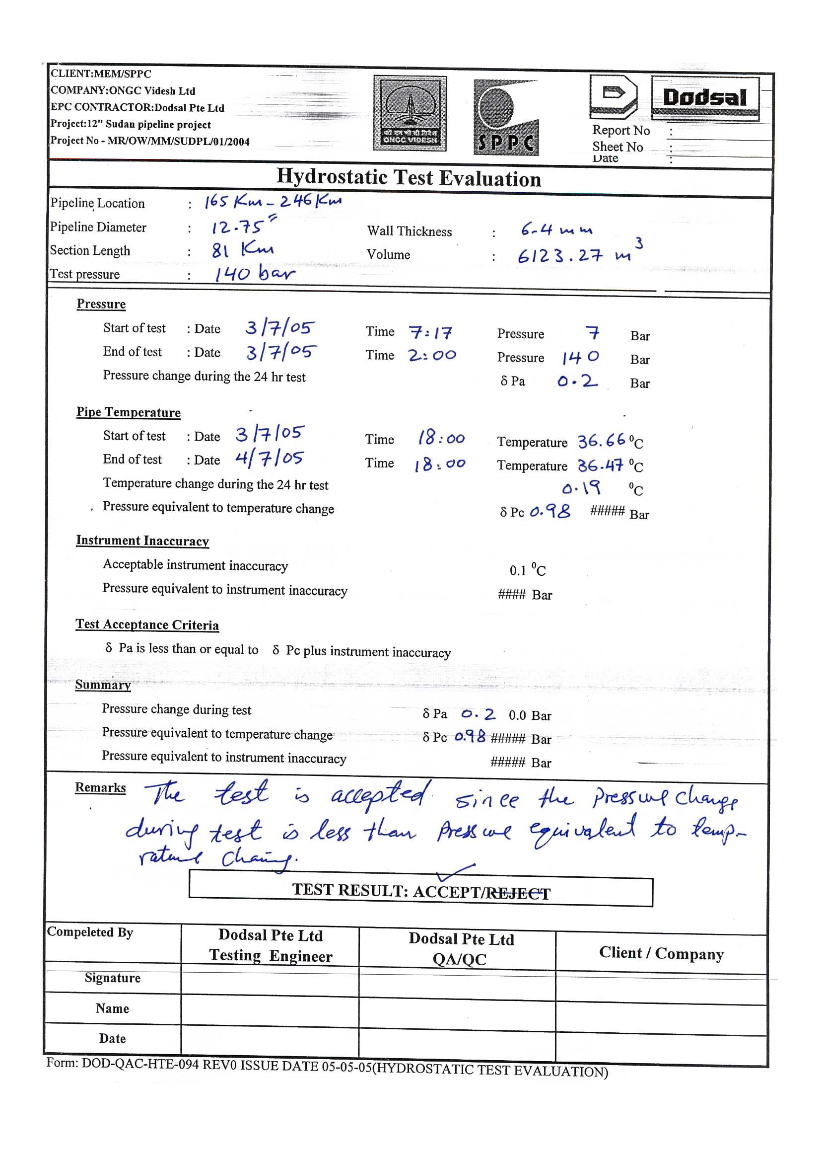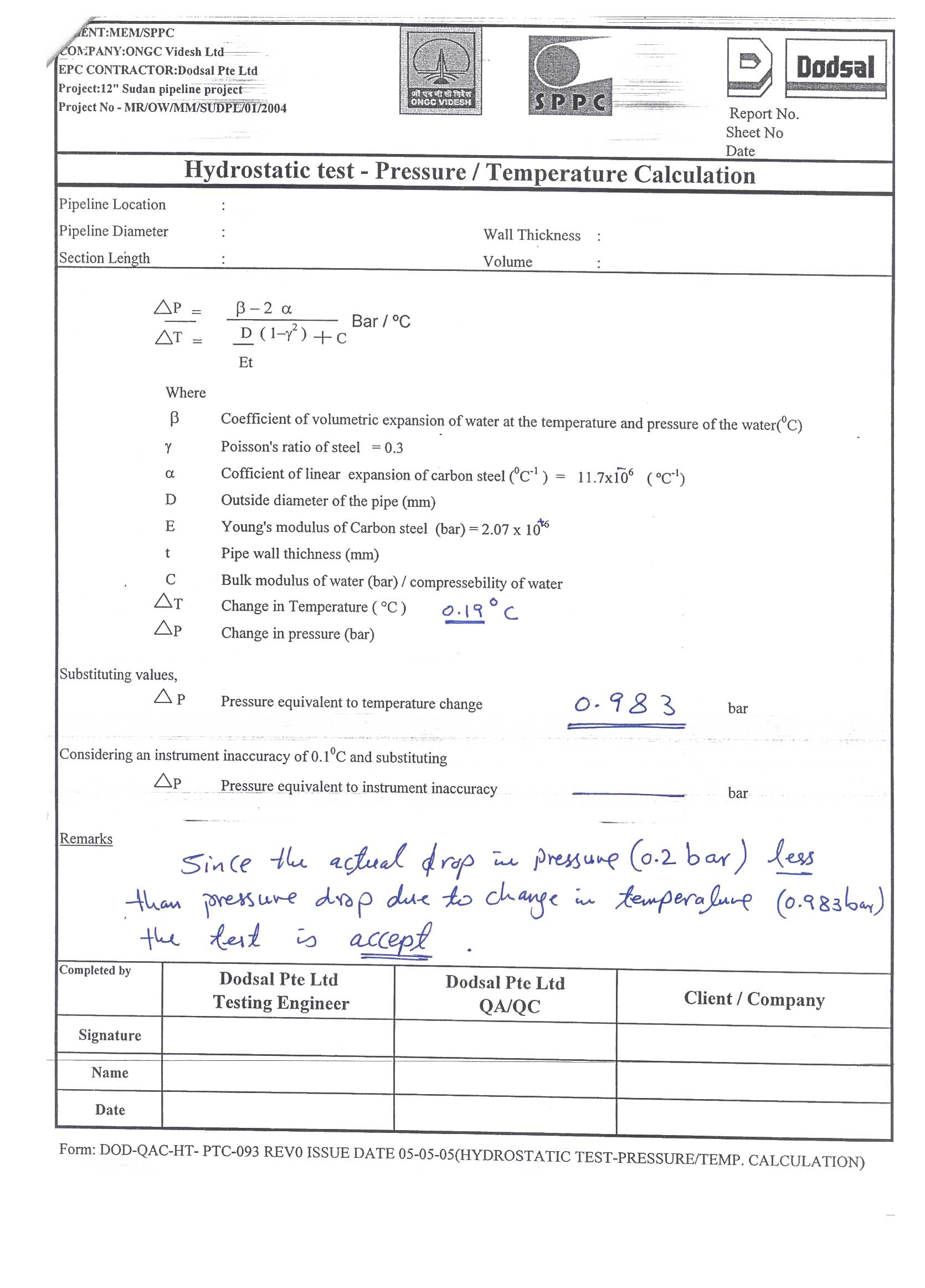 | Abstract: | This study was carried ot in order to revise the x-ray and ultrasonic test results done on the welded joint of the multi product exporting pipeline. The welding practise was carried out as per API 1104 code. The study also calculated the pressure drop for the hydrostatic test done on the line, the pressure drop was found to be 0.2 bar which is less than the pressure drop due to temperature change, that amount to be 0.983 bar. The study concluded that the hydrostatic test result is successful and hence the weldments done as per API 1104 are reliable and that the pipeline could be commissined effeciently. The hydrostatic test results supported the results of the x-ray and ultrasonic tests carried ont on the weldments previously. |